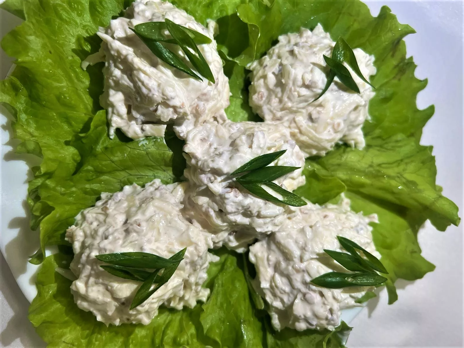 Сыр, яблоко, орехи натереть на крупной терке, перемешать со сметаной. Листья салата свернуть в виде трубочки и положить в них салатную смесь. Украсить сметаной, посыпать сверху тертым сыром и зеленью.