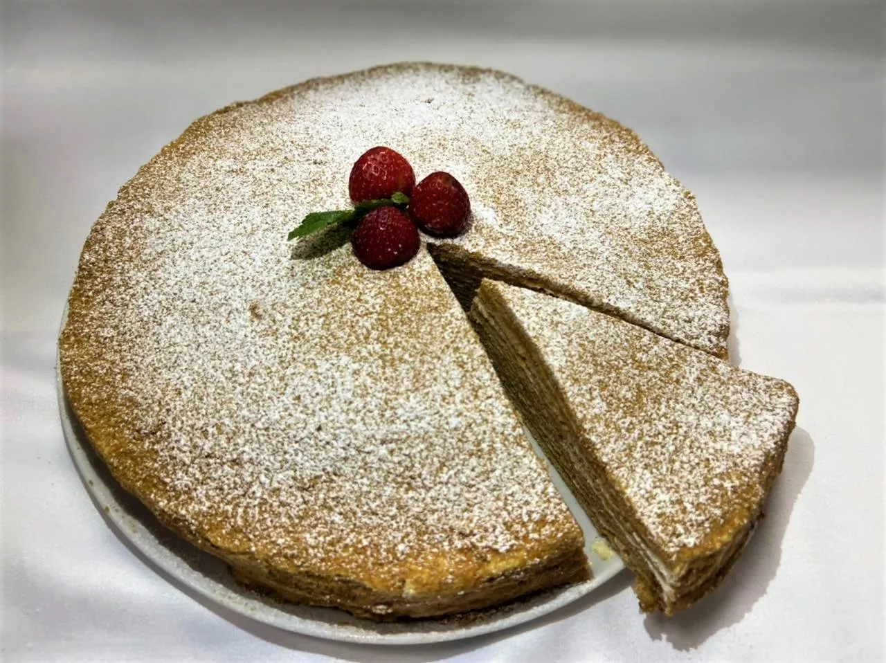 Сметану с сахаром взбить, добавить толченых орехов, клубнику или варенье.