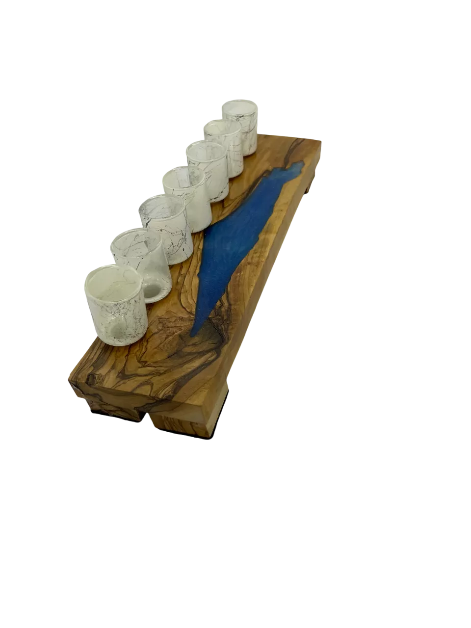 Семисвечник деревянный с синей картой Израиля - ru.kosherlekha.co.il