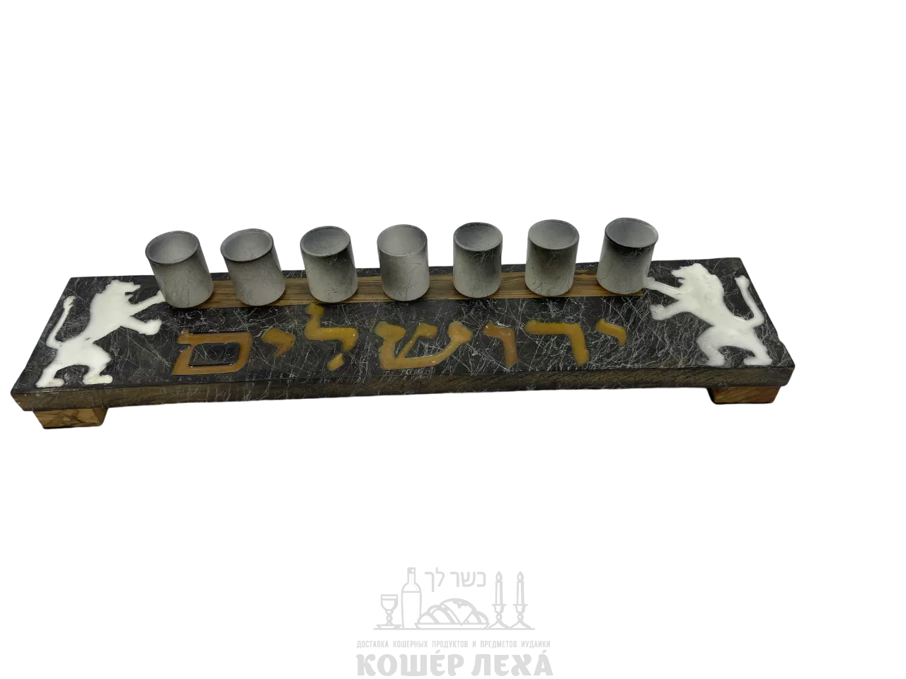 Семисвечник деревянный с белыми львами - ru.kosherlekha.co.il