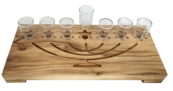 Менора из оливкового дерева с гравировкой - ru.kosherlekha.co.il