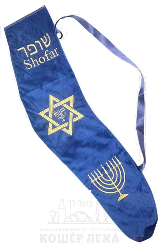 Вышитая сумка-шофар с изображением меноры и Звезды Давида и словом "шофар" на иврите #1 - ru.kosherlekha.co.il