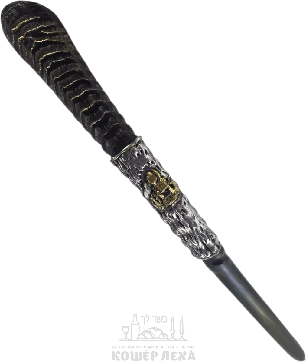 Шофар из орикса, экзотический, покрытый серебром и золотом, с рисунком в виде Ковчега Завета - ru.kosherlekha.co.il