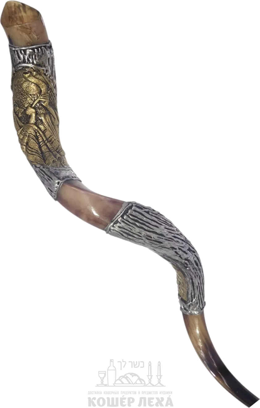 Полированный шофар куду, покрытый серебром и золотом,ручной работы - ru.kosherlekha.co.il