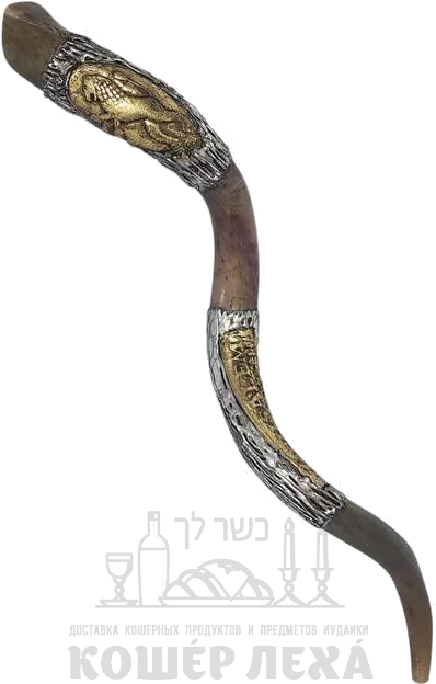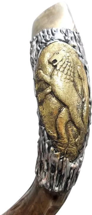 Посеребренный шофар, стоящий лев с рисунком - ru.kosherlekha.co.il