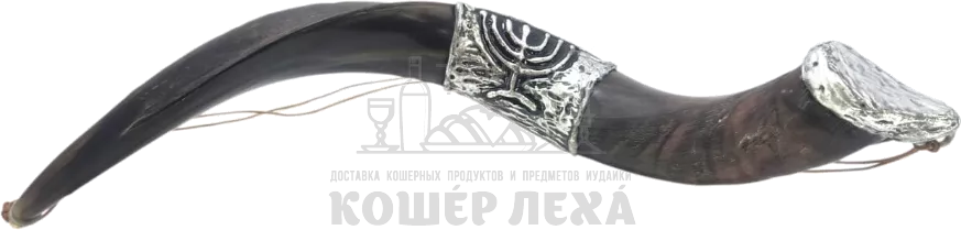 Маленький шофар куду, масло для помазания, посеребренный, с рисунком меноры, ручная работа - ru.kosherlekha.co.il