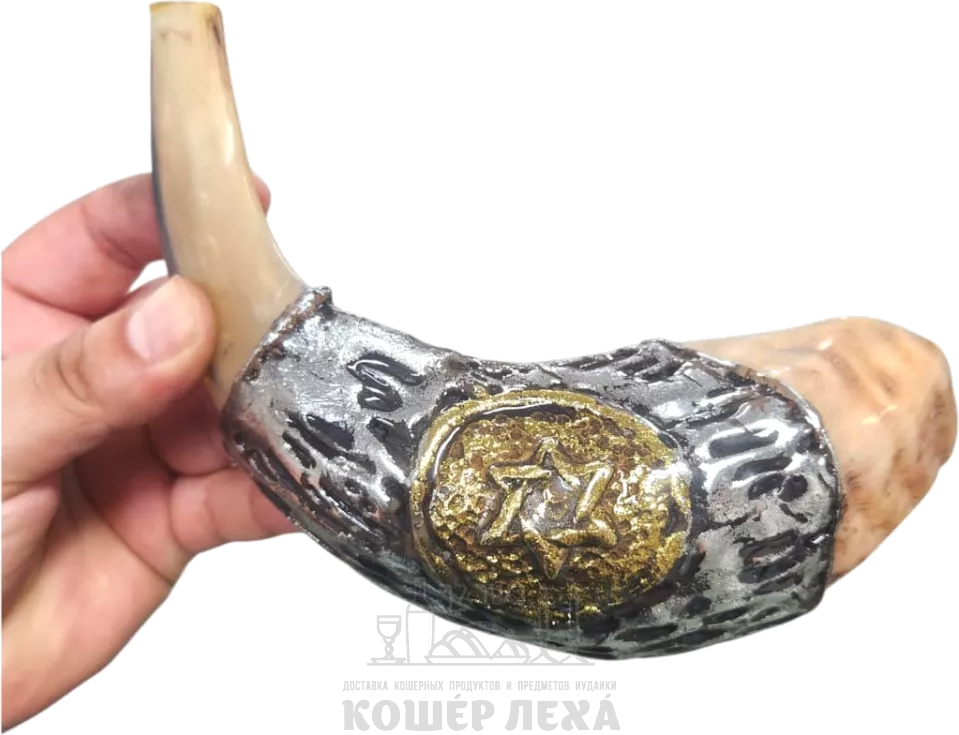 Рам-шофар, покрытый серебром и золотом, с рисунком Звезды Давида - ru.kosherlekha.co.il