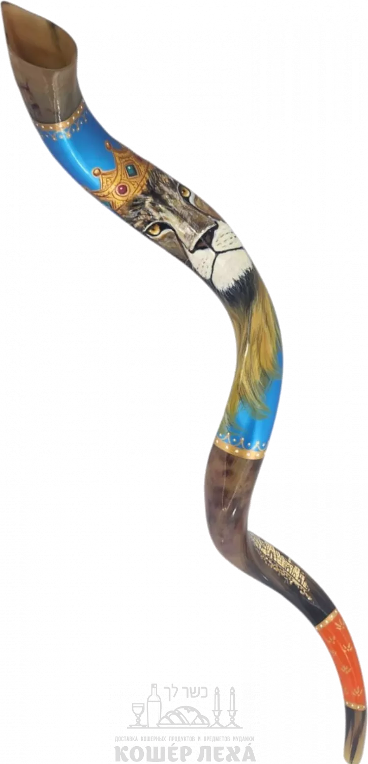 Лев Иуды в Шофаре куду с короной ручной работы - ru.kosherlekha.co.il