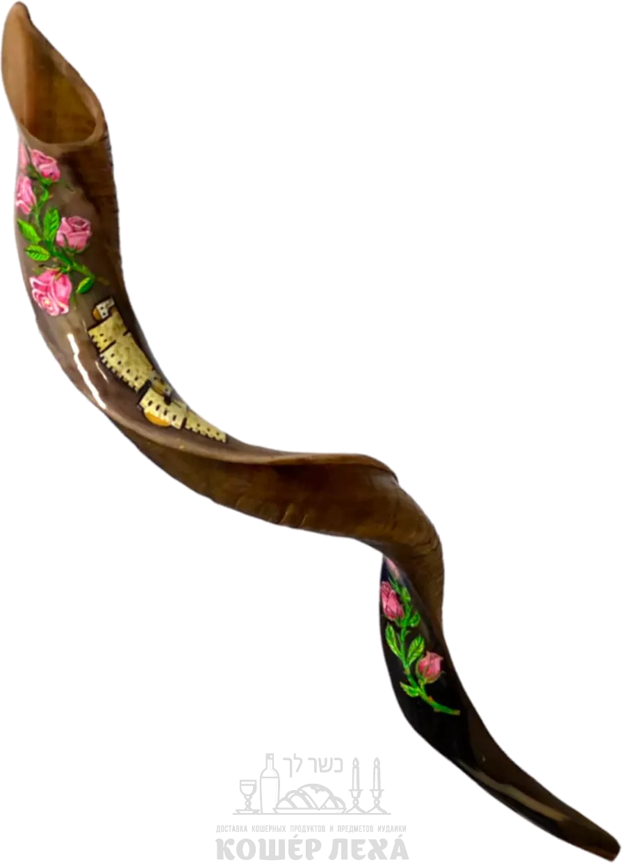 Расписной куду шофар с рисунком из роз и стеблей - ru.kosherlekha.co.il