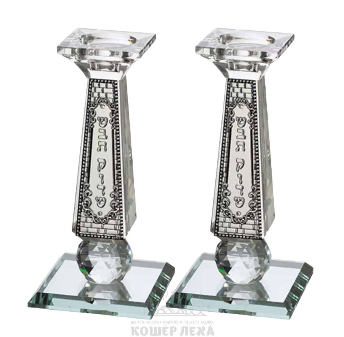 Хрустальные подсвечники с металлической вставкой, 20 см - ru.kosherlekha.co.il