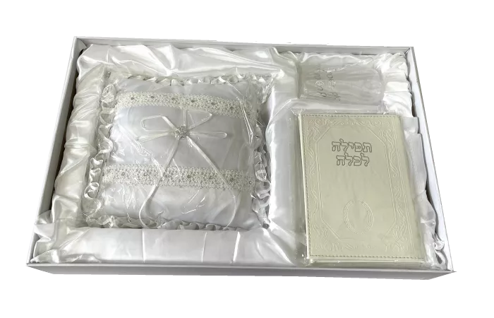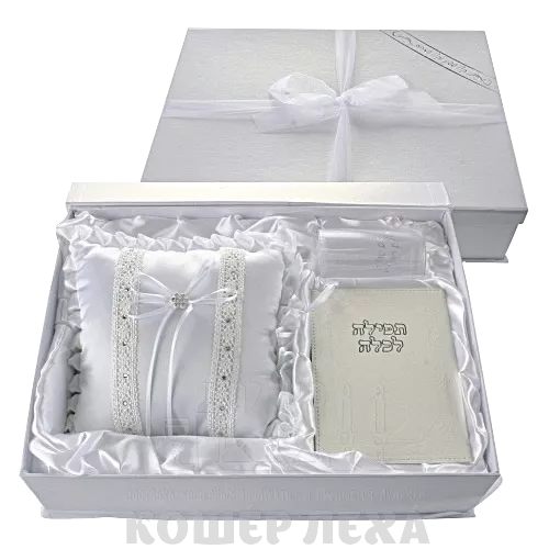 Набор жениха и невесты: молитвенник невесты, чашка жениха и подушка для колец, 9/45/29 - ru.kosherlekha.co.il