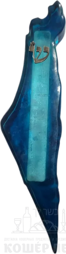 Эпоксидная мезуза синего цвета с рисунком карты Земли Израиль - ru.kosherlekha.co.il