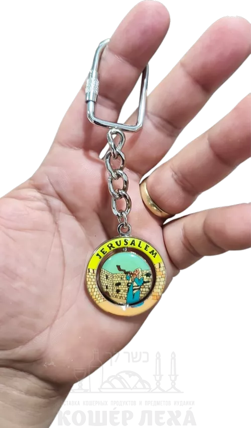 Вращающийся брелок с изображением священника, дующего в шофар у Западной стены - ru.kosherlekha.co.il