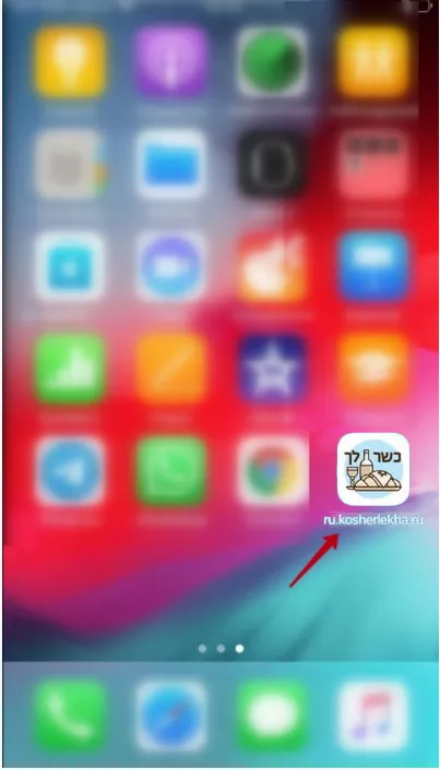 Добавление сайта kosherlekha.co.il в виде «имитации приложения» на главный экран в Apple iOS.